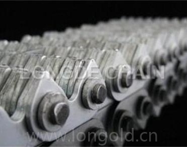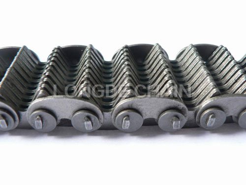 齒形鏈又稱無聲鏈(silent chains),屬于傳動鏈的一種形式。我國的國家標準為:GB/T10855-2003《齒形鏈和鏈輪》。齒形鏈是由一系列的齒鏈板和導板交替裝配用銷軸或組合的鉸接元件連接組成,相鄰節距間為鉸連節。根據導向型式可分為:外導式齒形鏈、內導式齒形鏈和雙內導齒形鏈。