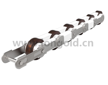 淺灰色的工程塑料制蓋罩,大口徑滾子和大口徑滾子之間或小口徑滾子和小口徑滾子之間的間隙被覆蓋完全,防止螺栓、螺母等嵌入或落下。HCP規格是對鏈條本體實施了硬化鍍鉻,滾子為工程塑料材質,適合于無塵室等厭銹環境。