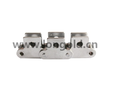 ◎ 不銹鋼雙節距輸送鏈板上安裝了附件(SK1、SK2)的鏈條。