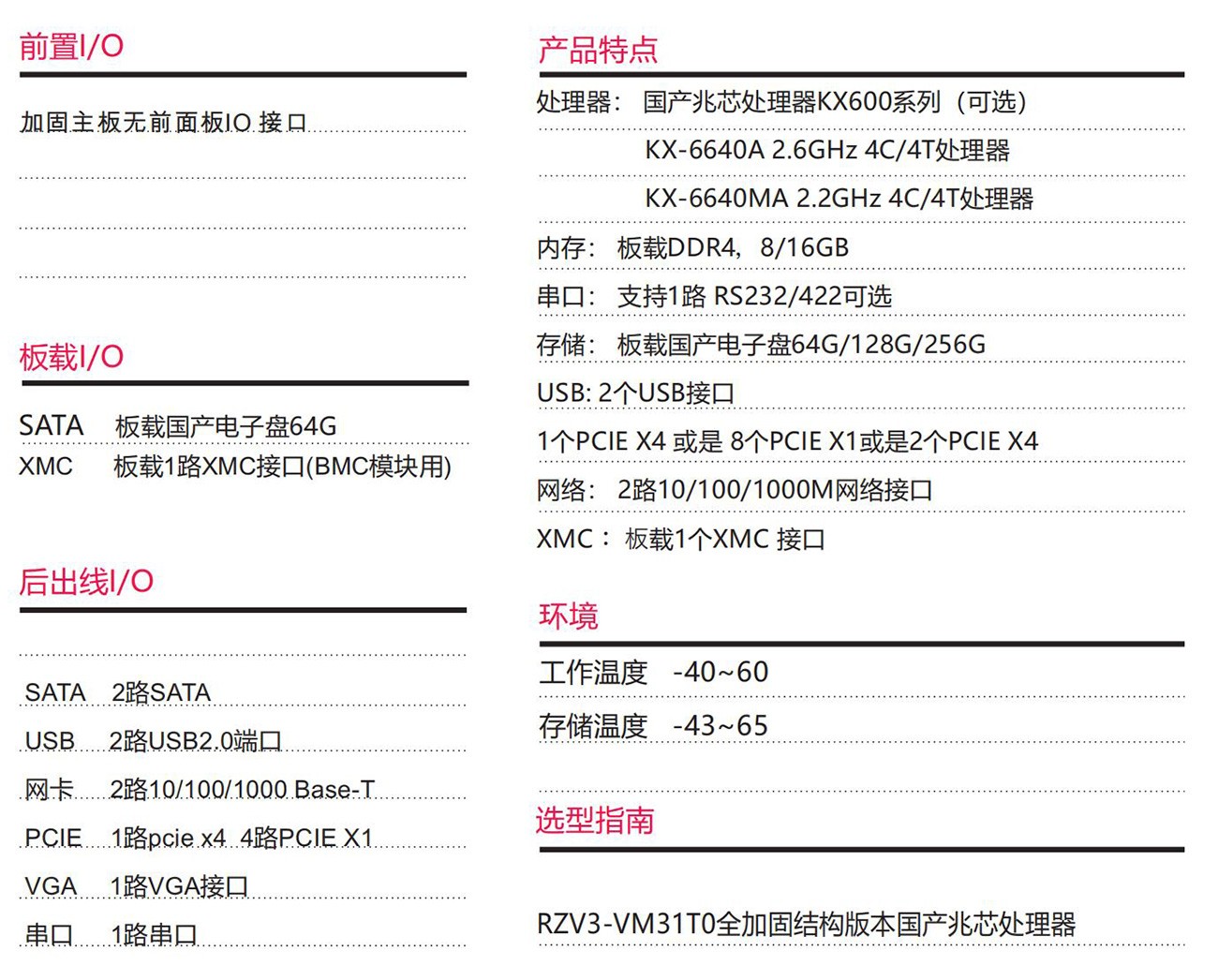 基于國產兆芯KX-6000系列處理器設計,3U VPX規 格 。 處 理 器 6nm工 藝 4MB高 速 緩 存 支 持 雙 通 道 DDR4內 存 , 集 成 顯 示 控 制 器 , 設 計 輸 出 VGA USBSATA等 功 能 接 口 支 持 國 產 /通 用 Linux 及 Windows操作系統具備豐富的外圍接口;設計了高效的散熱系統,可顯著提高處理器的浮點運算性能, 以太網、PCIe、支持高帶寬數據傳輸適用于雷達;信號處理等軍工領域。