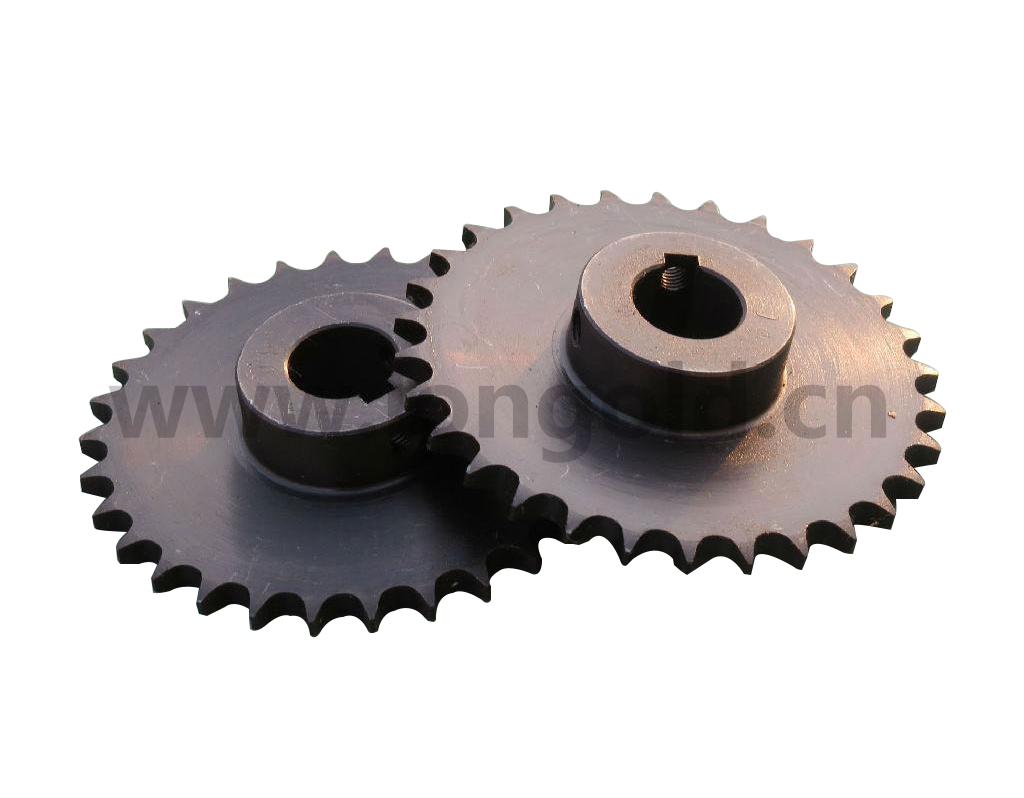 需要提高齒端強度和磨損壽命的場合,推薦使用齒端硬化鏈輪。各個尺寸小齒數的機械用碳素鋼輪轂切削規格,以及SD類型的齒端部均實施硬化處理。