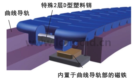 ◎ 采用世界首個融合塑料和金屬銷的 「特殊2層D型塑料銷」。保持塑料特性,并可利用磁力防止鏈條上浮。